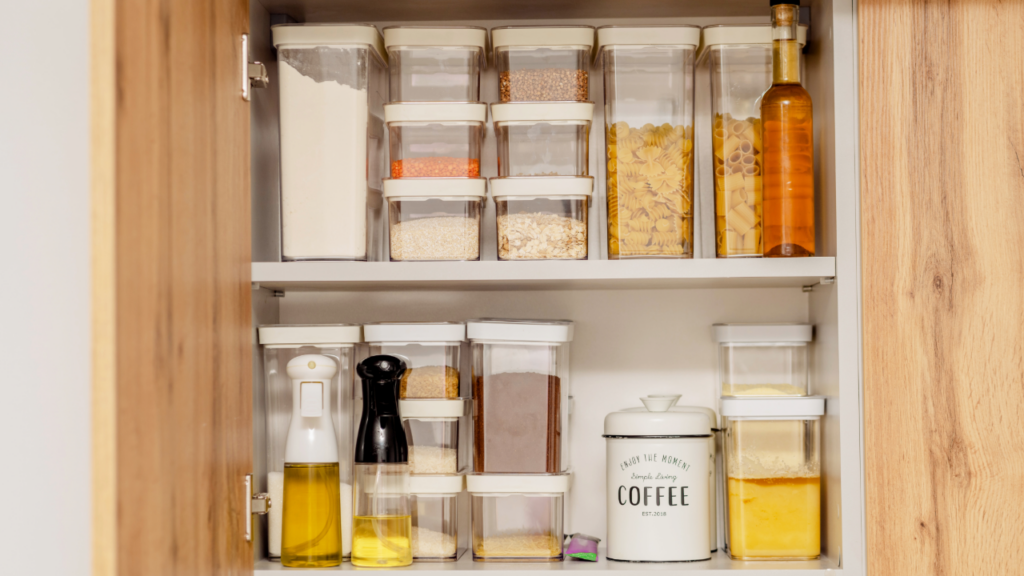 - Clear bins in a pantry