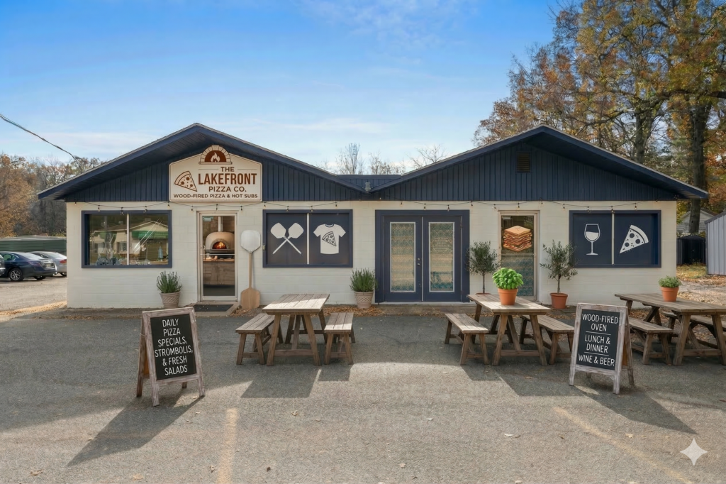 This location features 1-2 store fronts and a rental unit on site. The rental has been newly refinished with siding and a beautiful kitchen. It’s perfect for an owner occupy or to rent out. There’s a huge loft upstairs for the bedroom and a newly finished bathroom as well. This location would be great for a bakery/deli, marine shop, or some other retail space. See some of our ideas below!